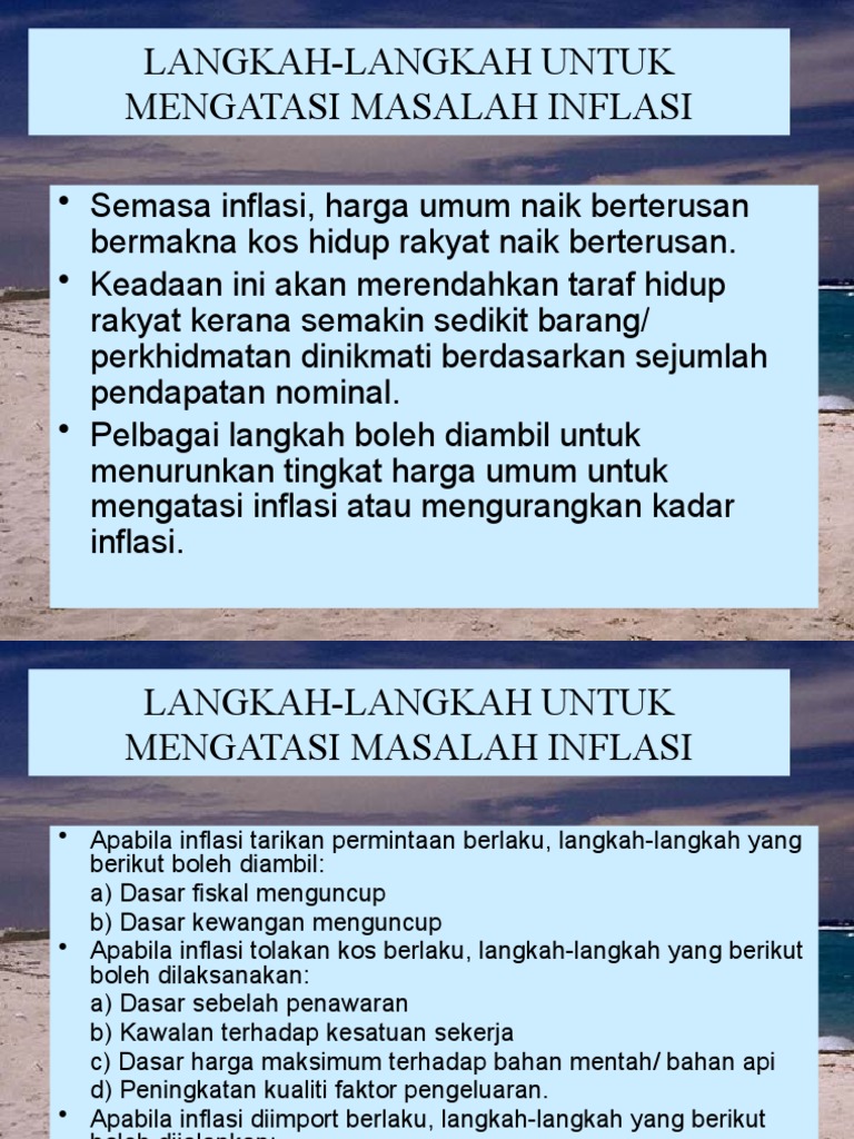 Tidak hanya di indonesia inflasi memang masih menjadi masalah terbesar setiap negara yang harus dihadapinya. Di malaysia kesan perlaksanaan gst kepada hasil kutipan cukai kerajaan memang tidak dinafikan di mana hasil cukai tak langsung telah bertambah dengan sangat signifikan. Berikut disertakan contoh karangan bahasa melayu pt3 yang bertajuk 'kesan kegiatan memusnahkan harta benda awam di malaysia'. Inflasi permintaan yang luar jangkaan (unexpected). Electronic arts telah menunjukkan pendapatan dan pendapatan yang kuat semalam setelah pasaran ditutup. Buka prawan gak masuk masuk bersama anak rantau malaysia.agil kasiksa. Ketika jumlah barang tetap sedangkan uang. Inflasi keseluruhan malaysia dijangka terus mencatat penurunan pada separuh kedua tahun 2017, disebabkan terutamanya. Jika kita tengok sejarah inflasi di malaysia pada tahun 1985 kadar inflasi hanyalah 0.4% tetapi telah meningkat kepada 4.7% dalam tahun 1992. Dalam ekonomi, inflasi bermaksud suatu kenaikan dalam tingkat harga umum barangan dan perkhidmatan dalam sesebuah ekonomi dari semasa ke semasa. Dengan pemahaman jelas tentang apakah itu inflasi, bagaimana ia memberi kesan kepada rakyat malaysia? Di malaysia juga berlaku senario di mana pemodal tempatan dan antarabangsa enggan menaikkan upah tenaga buruh hanya kerana ingin melipat gandakan keuntungan perniagaan. Inflasi di malaysia pada februari 2017 lalu merupakan yang tertinggi selama lebih dari delapan tahun.