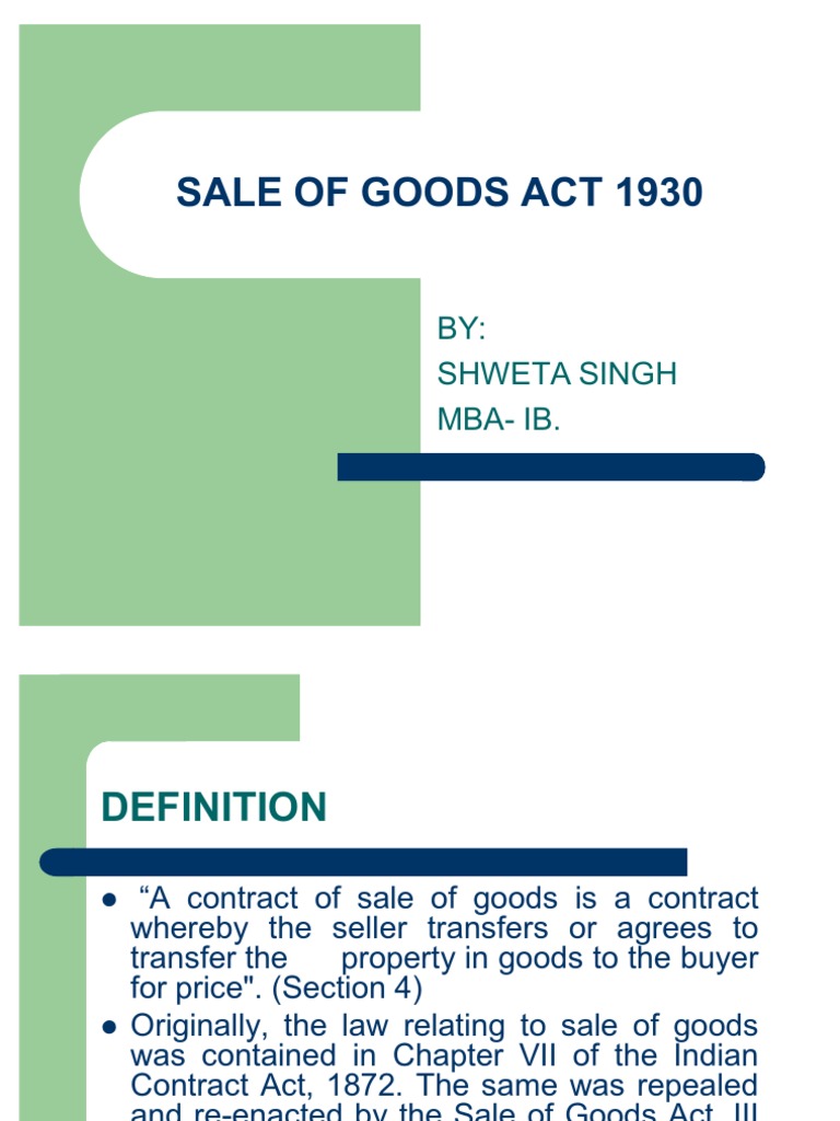 .act 1957 sale of goods a contract of sale of goods is a contract where the seller transfers or agrees to transfer the property of one is the legal transfer of ownership of the goods, which is called passing of title.